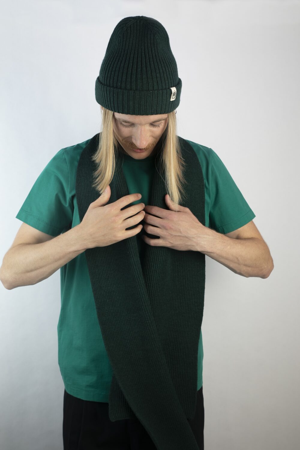 Strickschal Merinowolle waldgrün